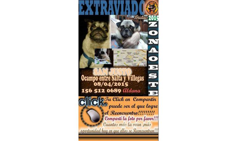 Perdido Carlino el 8/3/15, macho, 2 años, llamado Brutus en San Justo centro, Buenos Aires, Argentina.