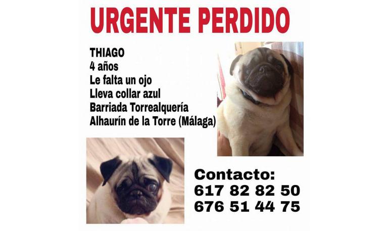 Thiago se ha perdido por la barriada Torrealquería (Alhaurín de la Torre, Málaga) en noche vieja. Le falta un ojito y lleva collar azul.Datos de contacto
