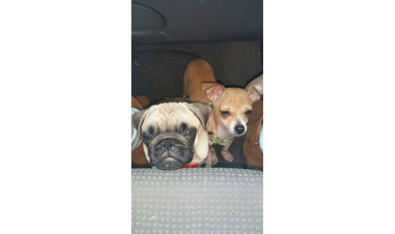 "Hola, buenos dias, os mando estas fotos pues nos han robado a nuestros peques, son un carlino y un chihuahua de 8 meses.